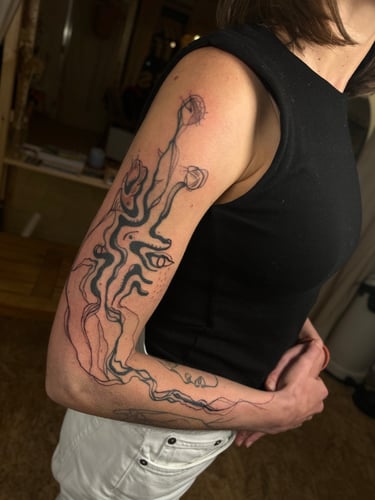 Each piece is created through conversation and collaboration, adapting to the body and the person who wears it. I’m interested in how a tattoo moves, ages, and becomes part of someone’s life.